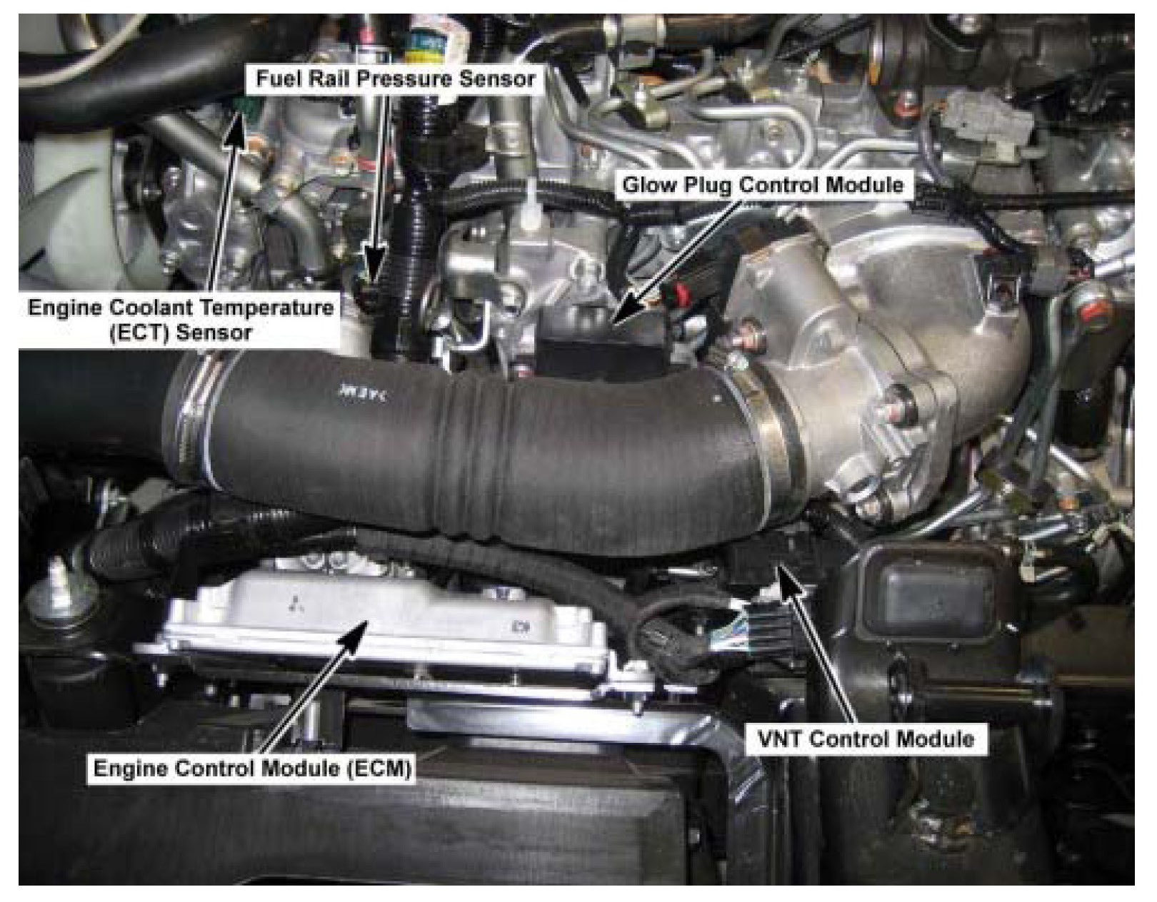 E-25 Engine Coolant Temperature (ECT) Sensor (5.2L)On the Upper Left Side of the Engine, In the Cylinder Head, Below the Coolant Inlet