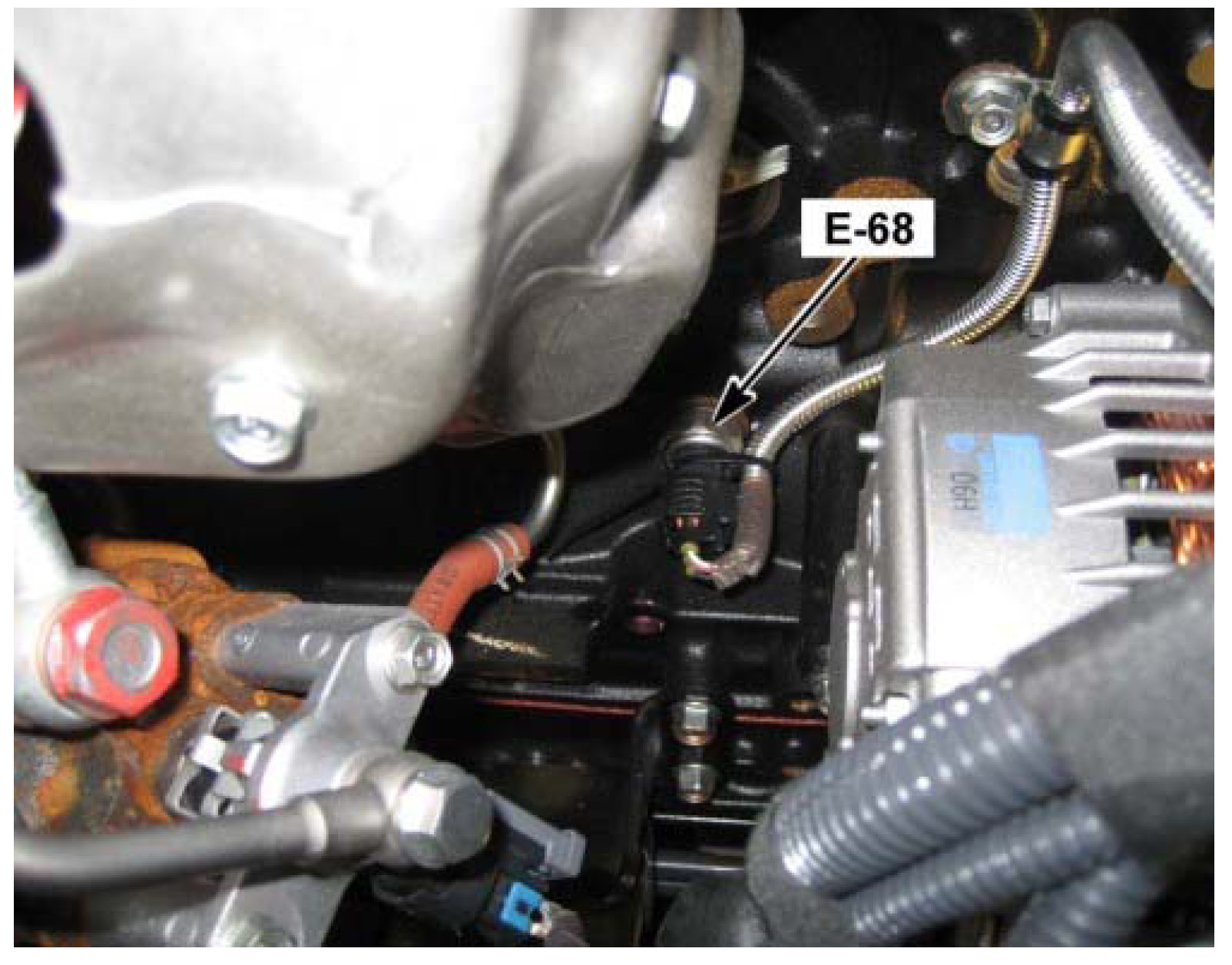 On the Lower Left Side of the Engine, Above the Oil Filter (E-68) (5.2L)