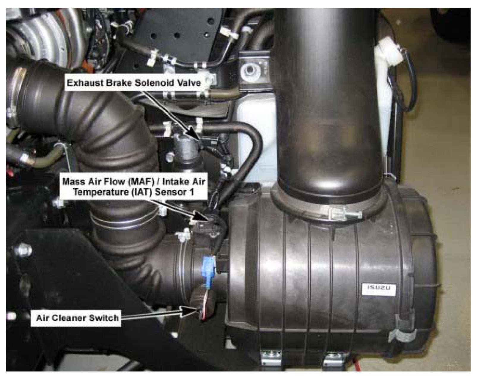 By the Right Outer Frame Rail, Behind the Air Cleaner, On the Air Intake