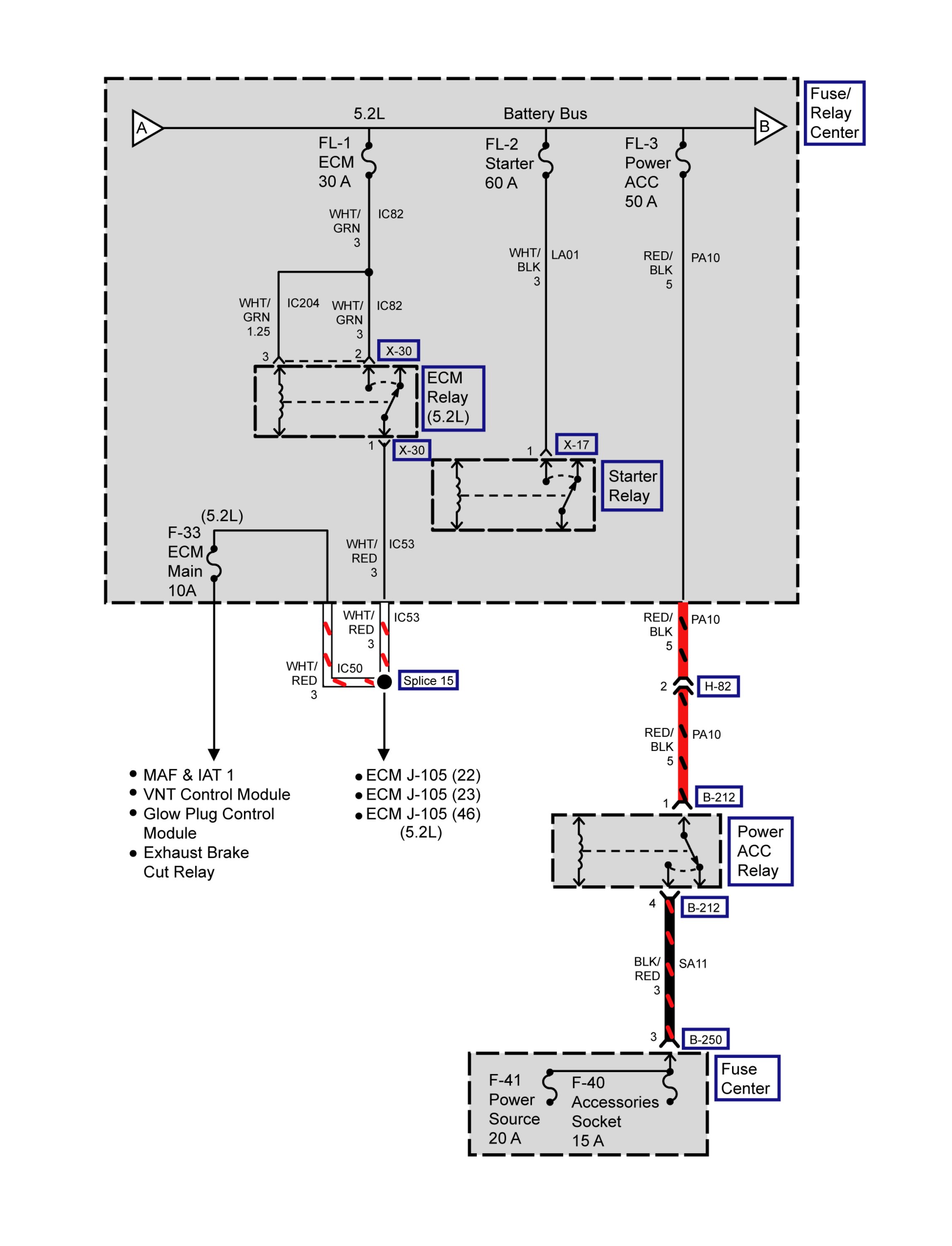 FL-1, FL-2, FL-3 and F-33 Fuses (5.2L)
