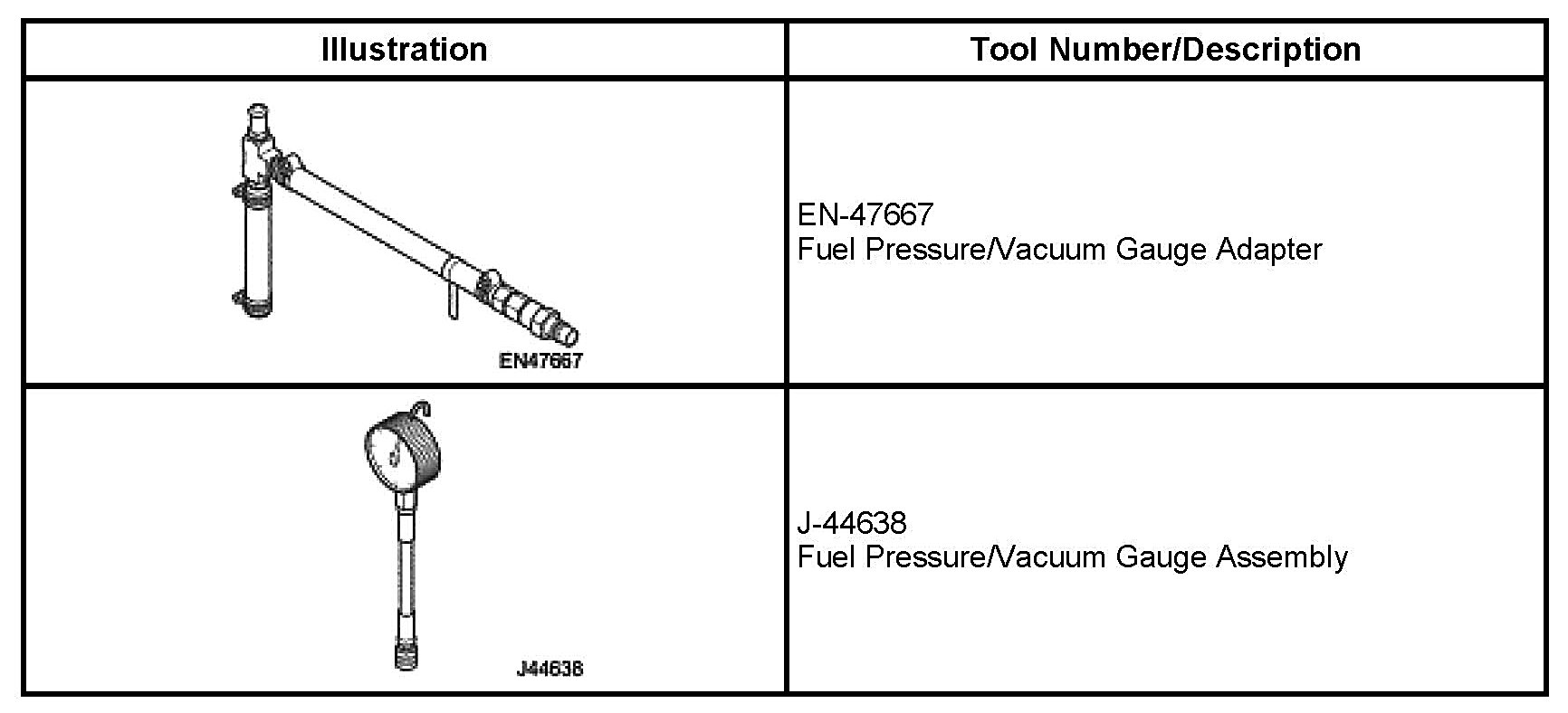 2. Install the adapter. Special tool Fuel pressure/vacuum gauge adapter: EN-47667
