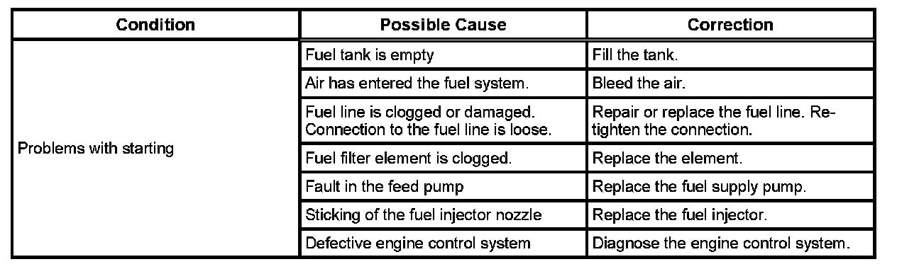 - If the fuel tank is empty or near empty, air might be allowed to go into the fuel system. With air in the fuel system, smooth flow of fuel into the supply pump is interrupted and this DTC may set. Perform bleeding of fuel system after refilling.