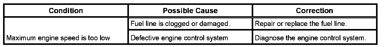 - Maximum engine speed is too low