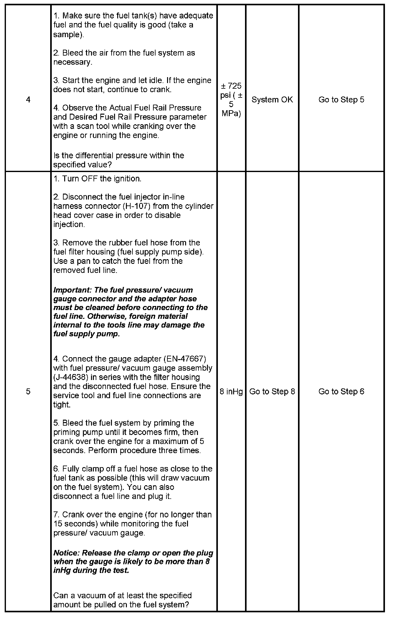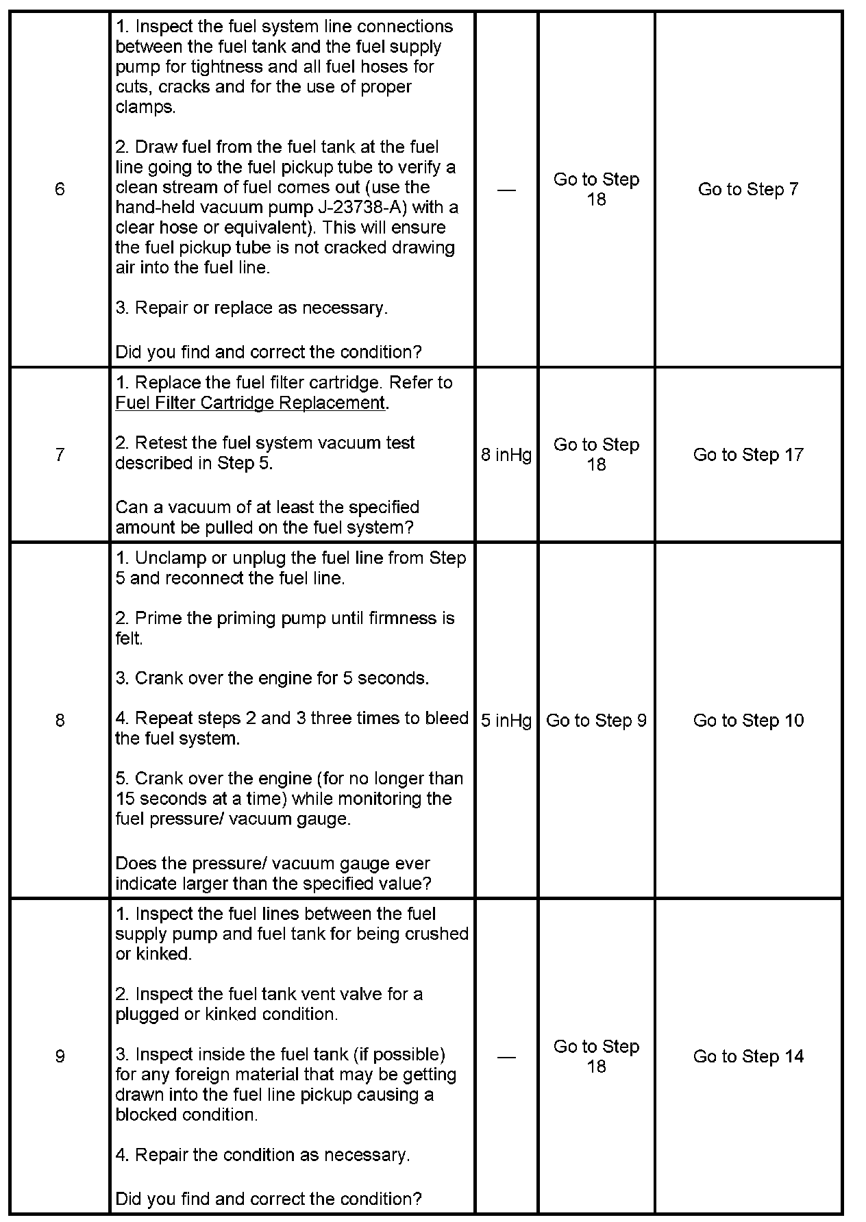 Standard fuel vacuum - Less than 5 inHg