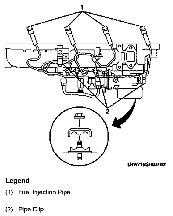 6. Tighten the fuel injection pipe clips to the specified torque.