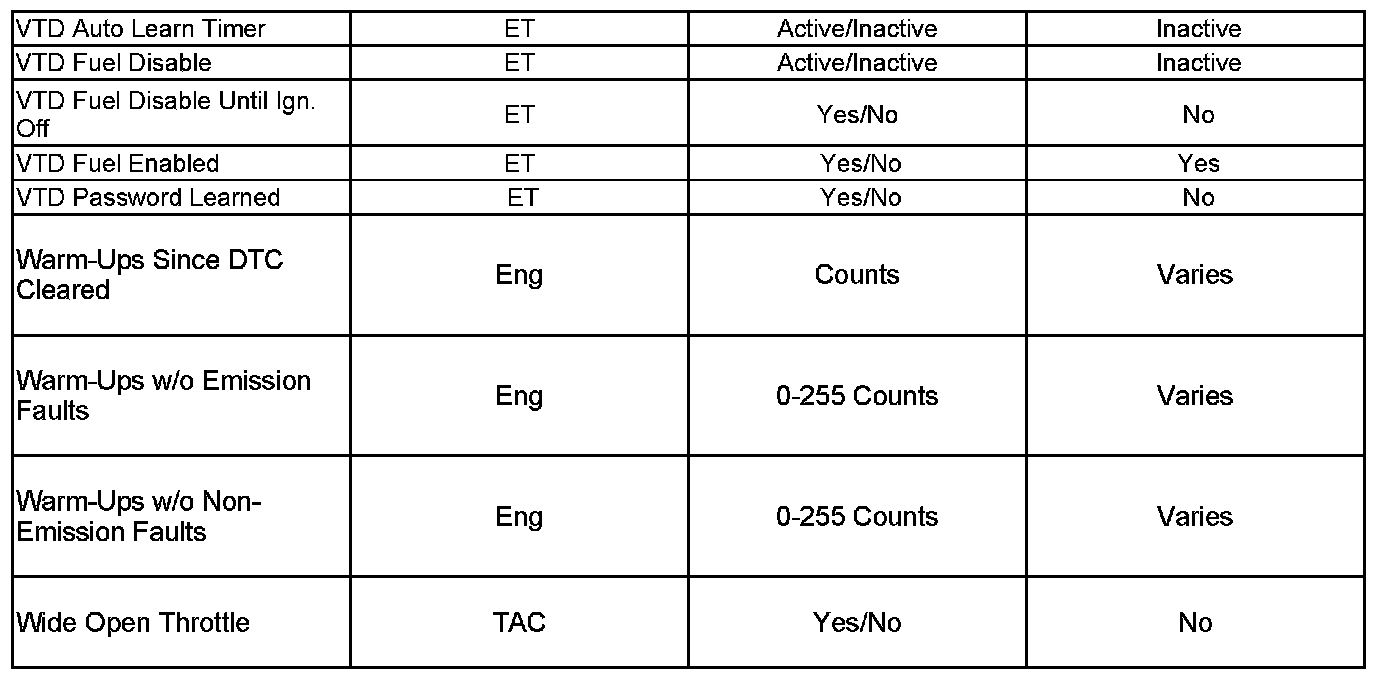 The column labeled Data List indicates where a parameter can be located on the scan tool. Refer to the scan tool operating manual for the exact locations of the data lists. The following is a description of each term listed: