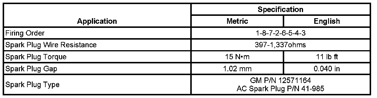 Ignition System Specifications