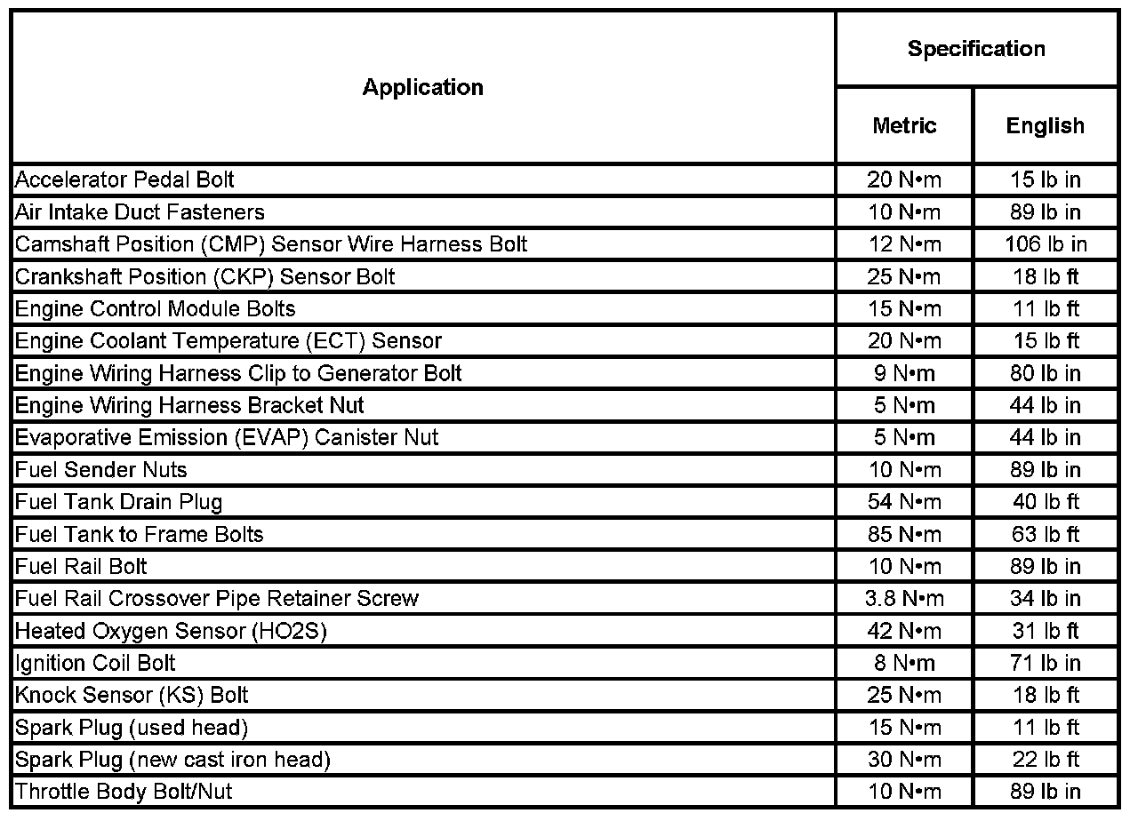 Fastener Tightening Specifications