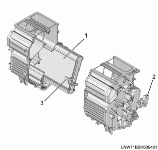 The fin sensor is installed to the outlet of the evaporator core, and is used to detect the temperature of the air that passes through the evaporator core.