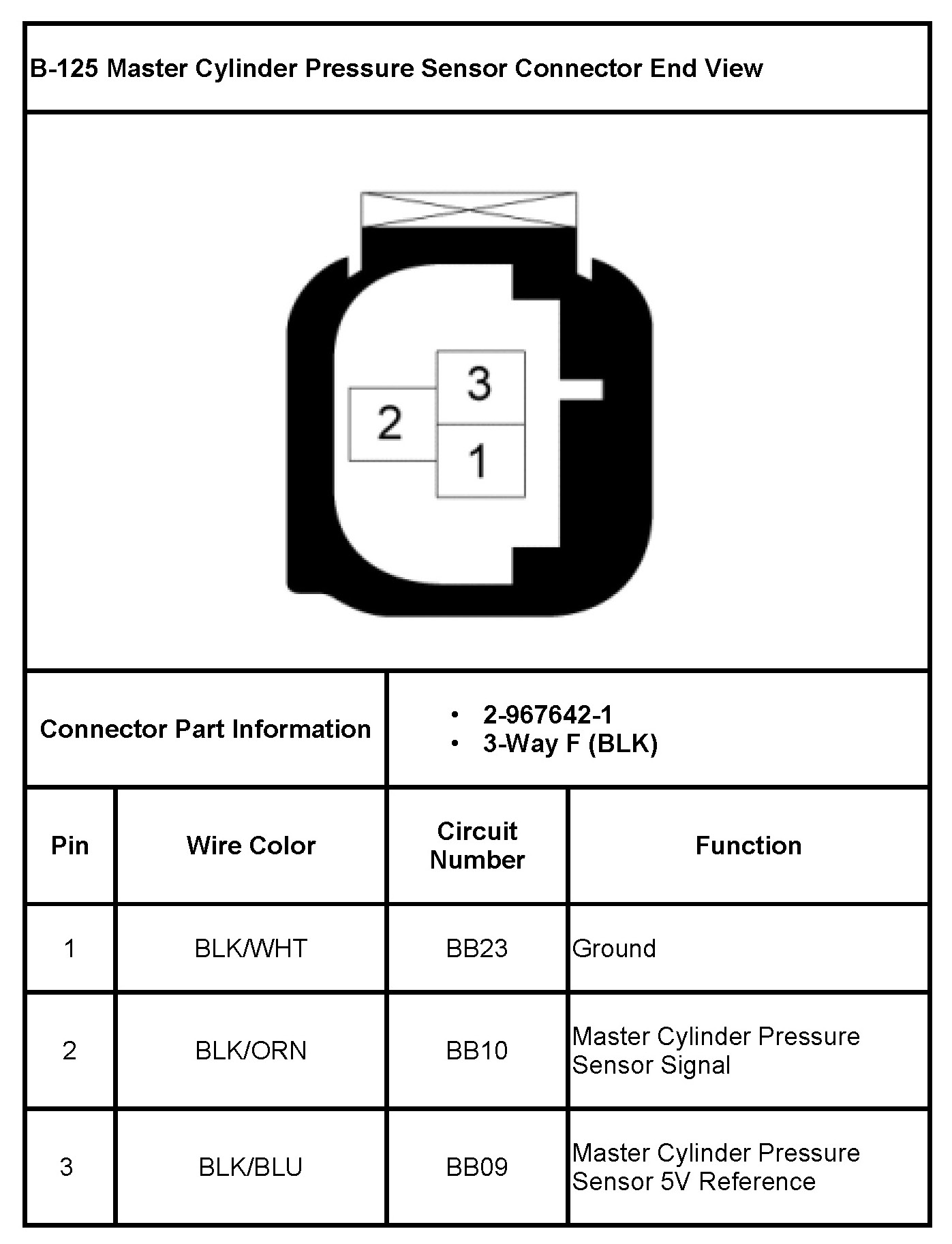 B-125 Master Cylinder Pressure Sensor