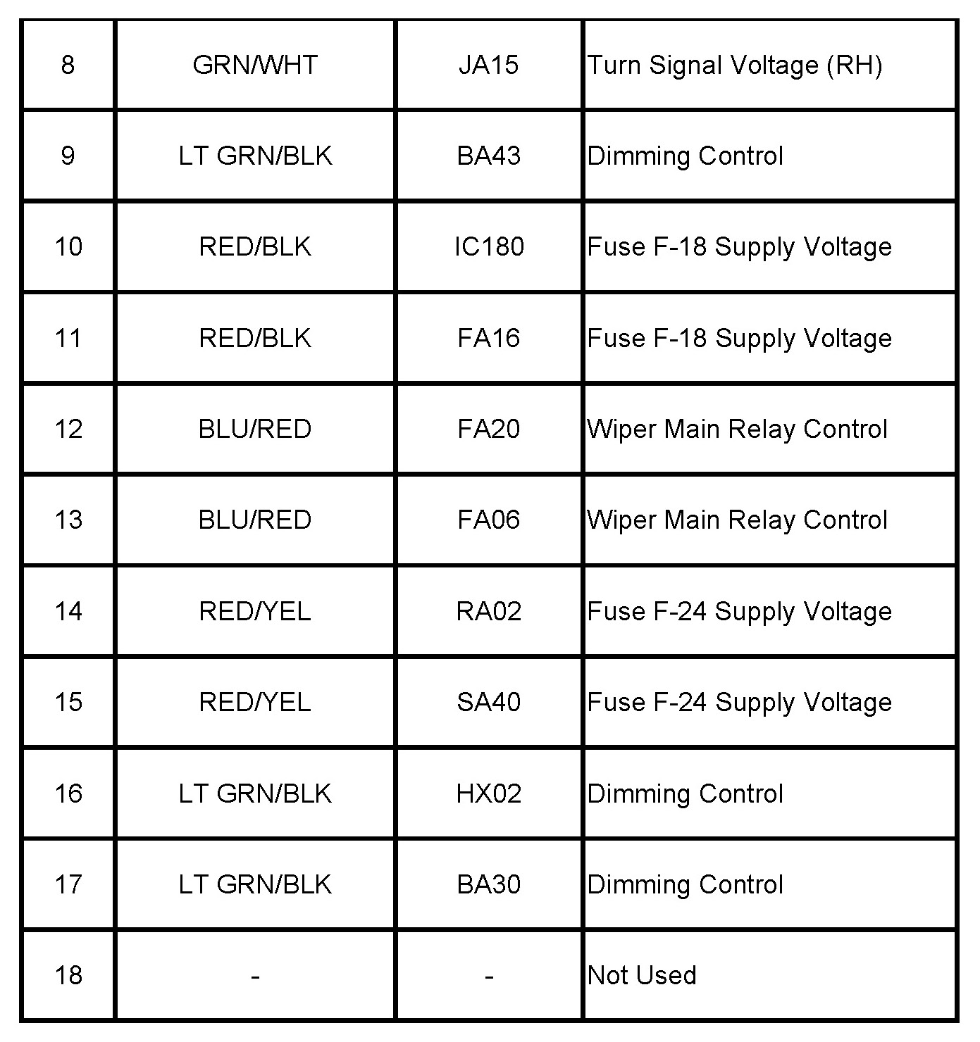Component Connector View (Junction Block Removed For Clarity)