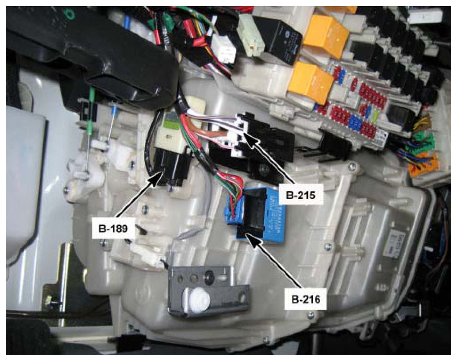 Behind the Center of the I/P, On the Left Side of the Blower Case