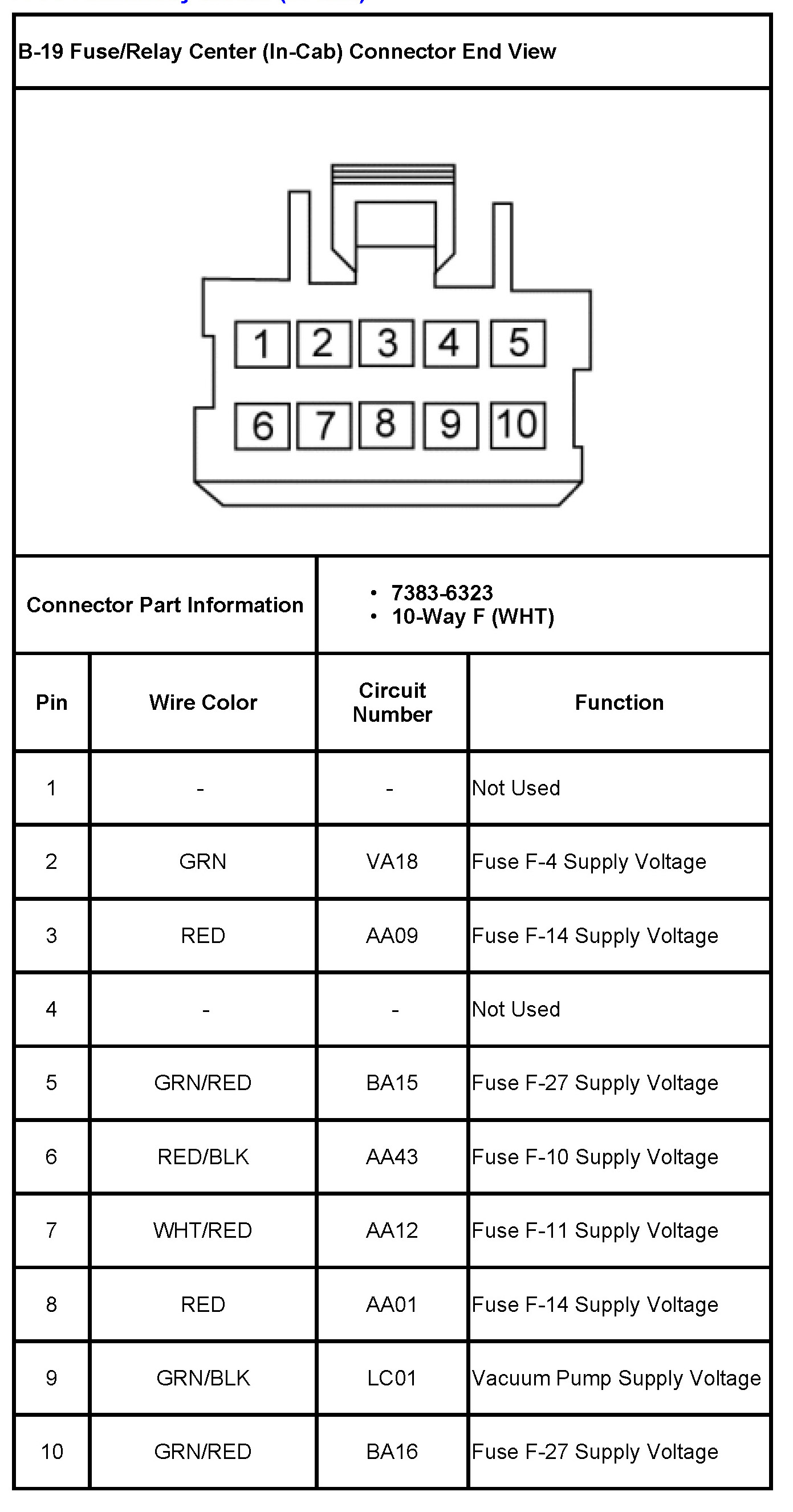 B-19 Fuse/Relay Center (In-Cab)