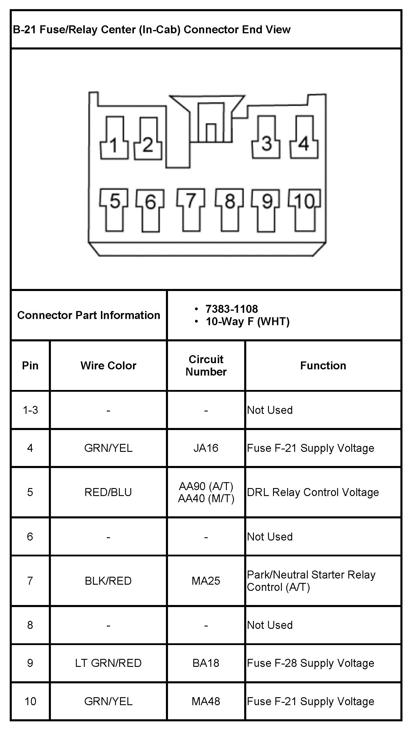 B-21 Fuse/Relay Center (In-Cab)
