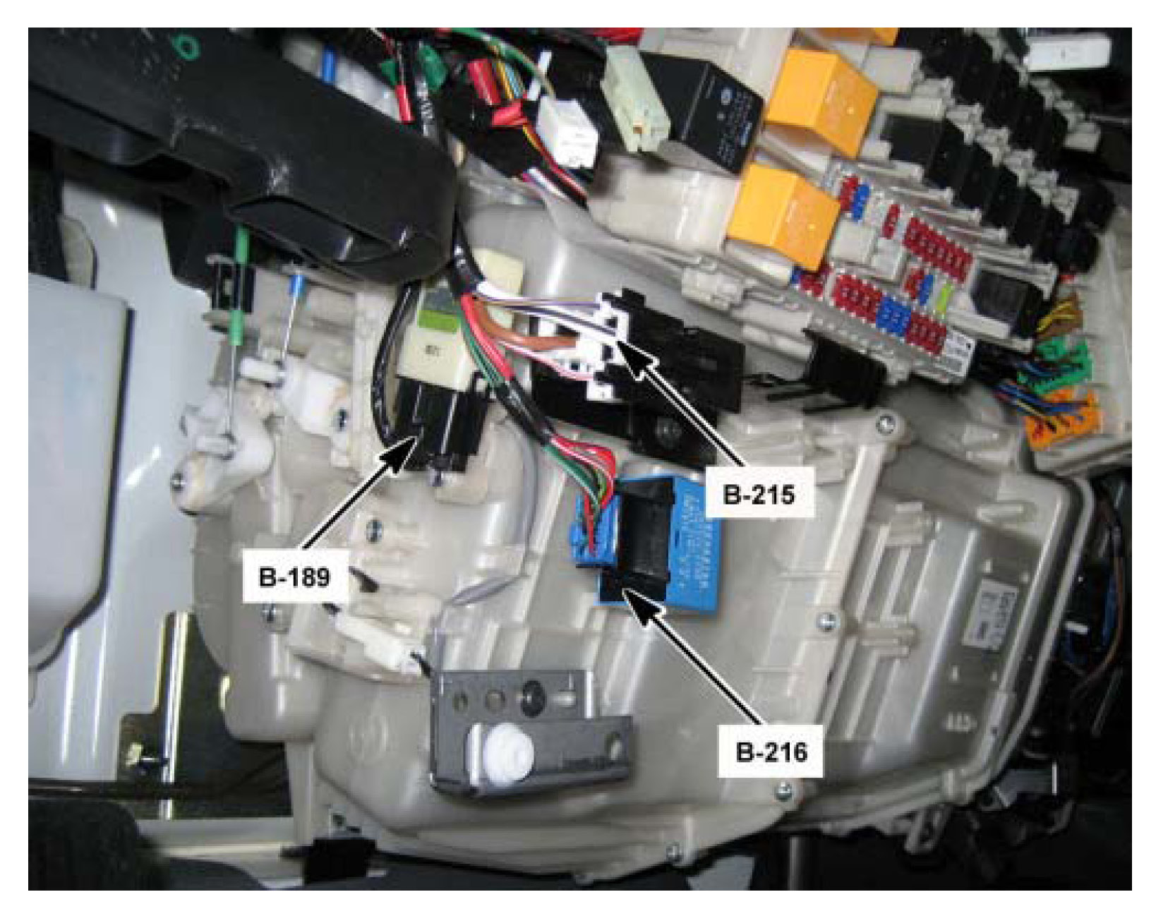 Behind the Center of the I/P, Under the In-Cab Fuse Relay Center