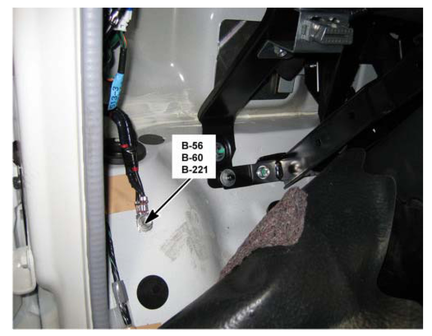 On the Front Cab Floor Under the Floor Mat, Next To The Left A-Pillar