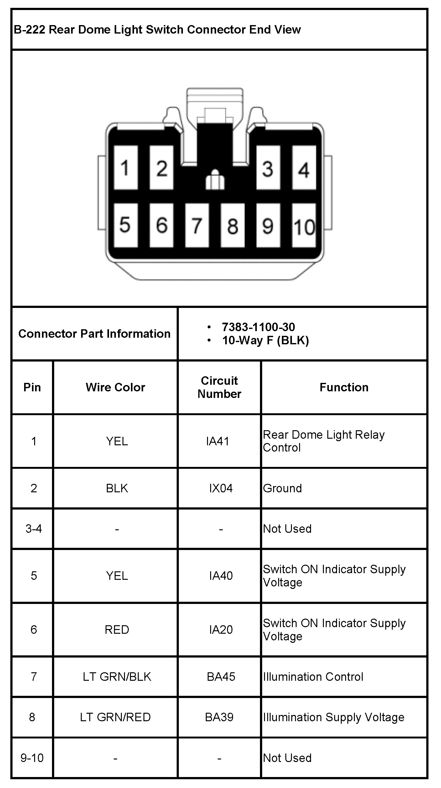 B-222 Rear Dome Light Switch