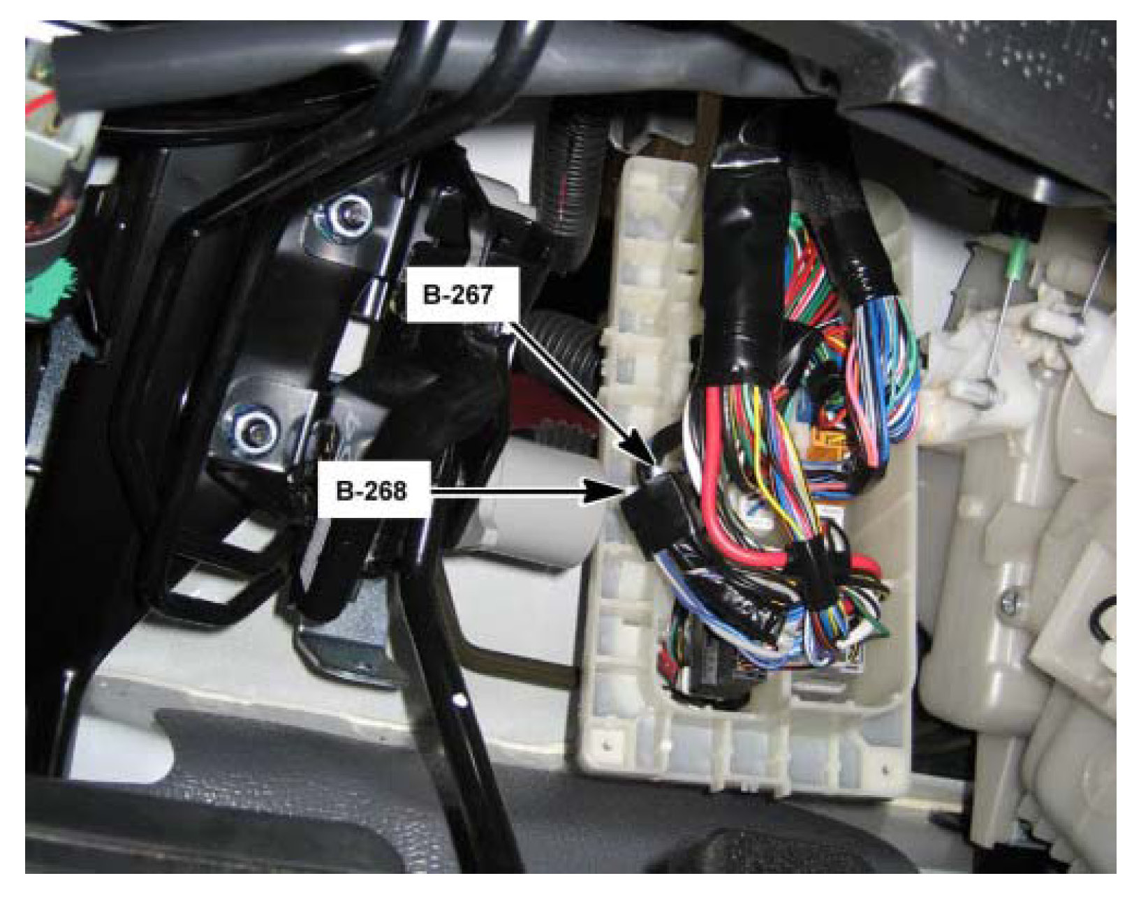 Under the Center of the I/P, Behind the Cover of the Bulkhead Connectors