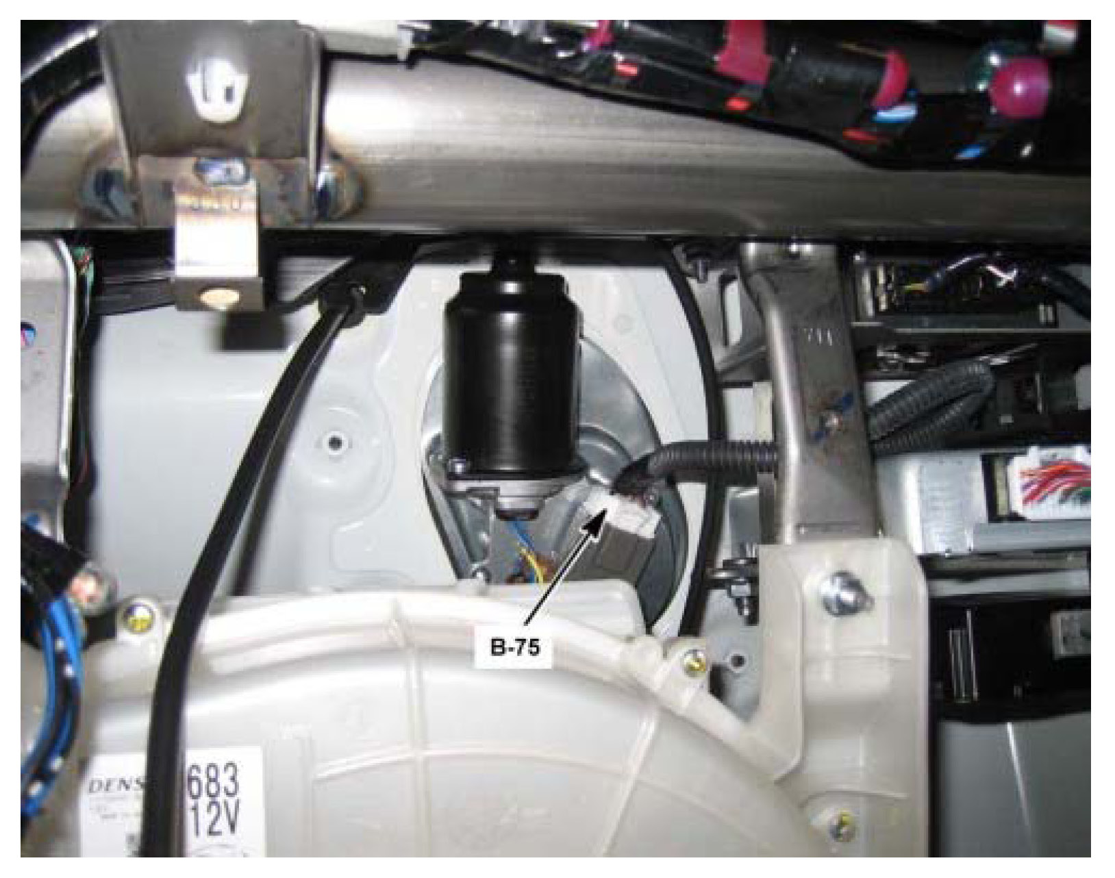 Behind the Right Side of the I/P, Above the Blower Motor