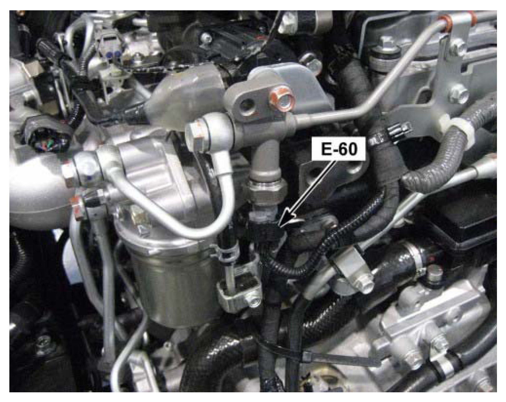 E-60 Diesel Particulate Filter Fuel Pressure SensorOn the Upper Left Rear Side of the Engine, Next To The Engine Fuel Filter
