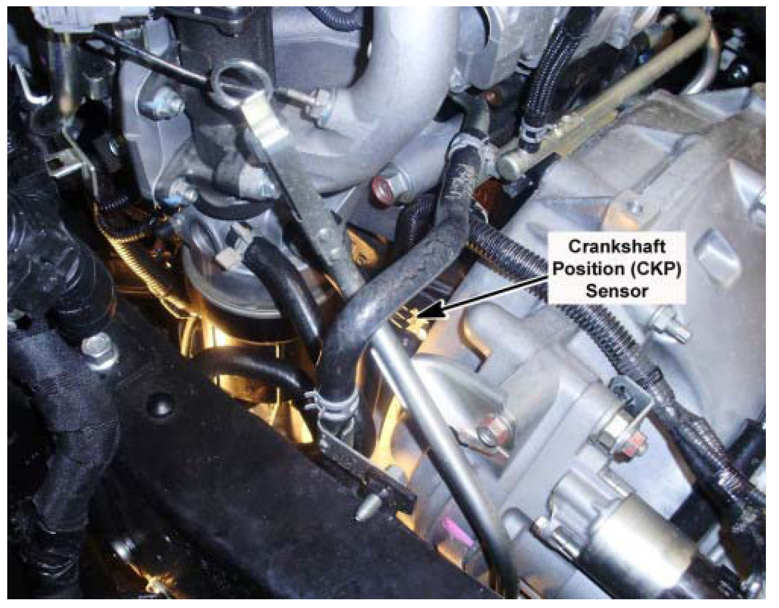 E-69 Crankshaft Position (CKP) SensorOn the Top Left of the Flywheel Housing (5.2L)