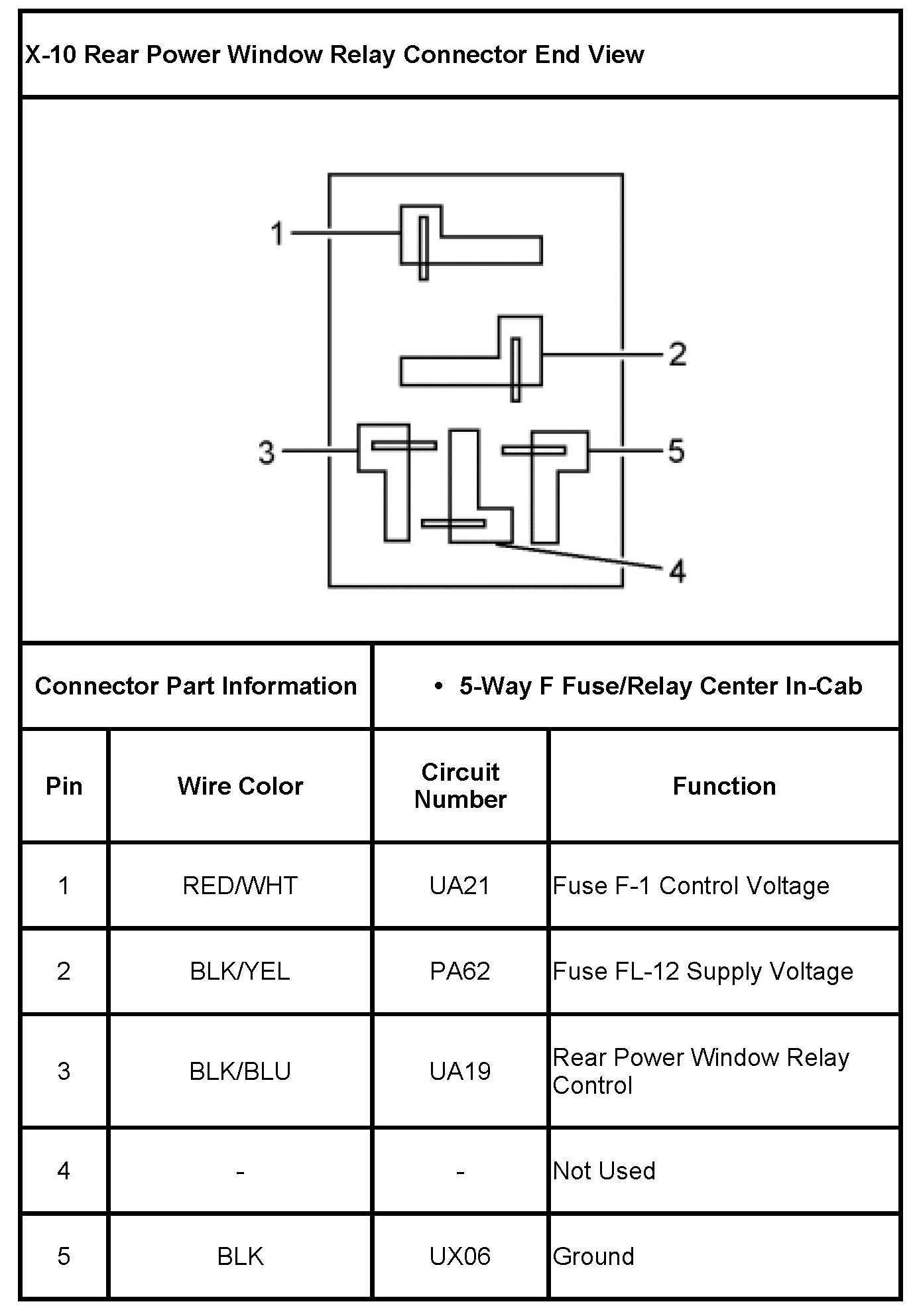 Rear Power Window Relay (X-10)