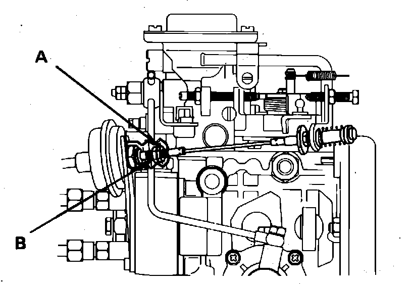 4. Adjust fast idle speed to specifications by loosening locknut A and turning adjusting nut or screw B, Fig. 10 until specified speed is obtained.