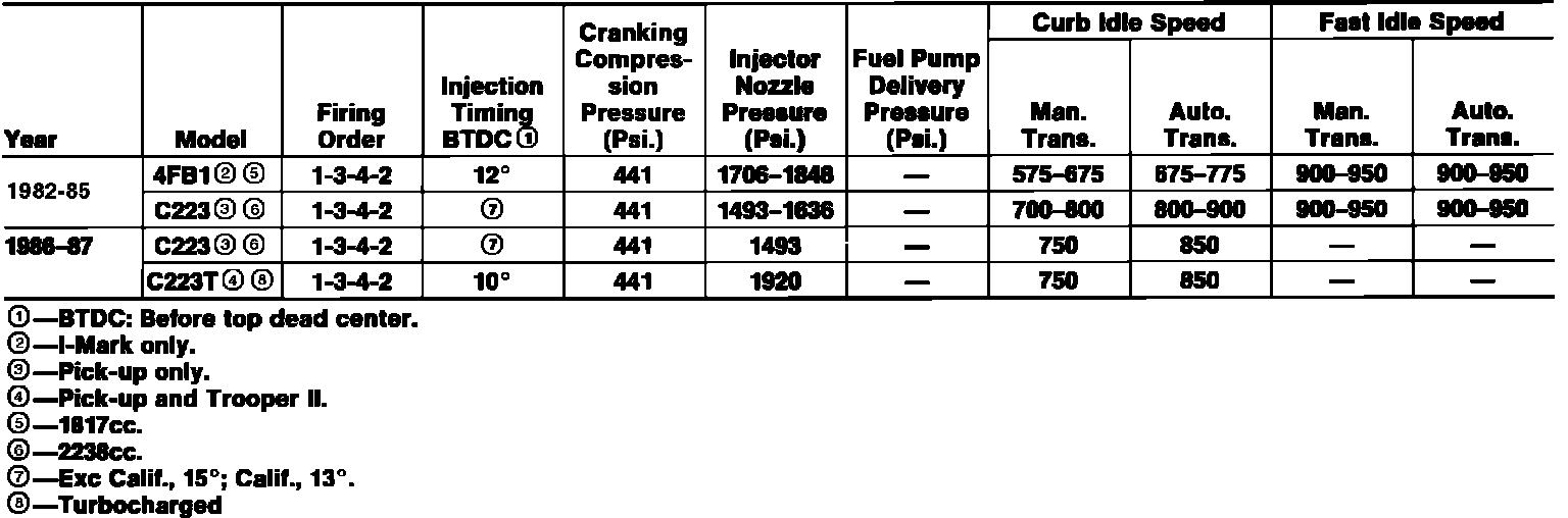 Diesel Engine Performance Specs
