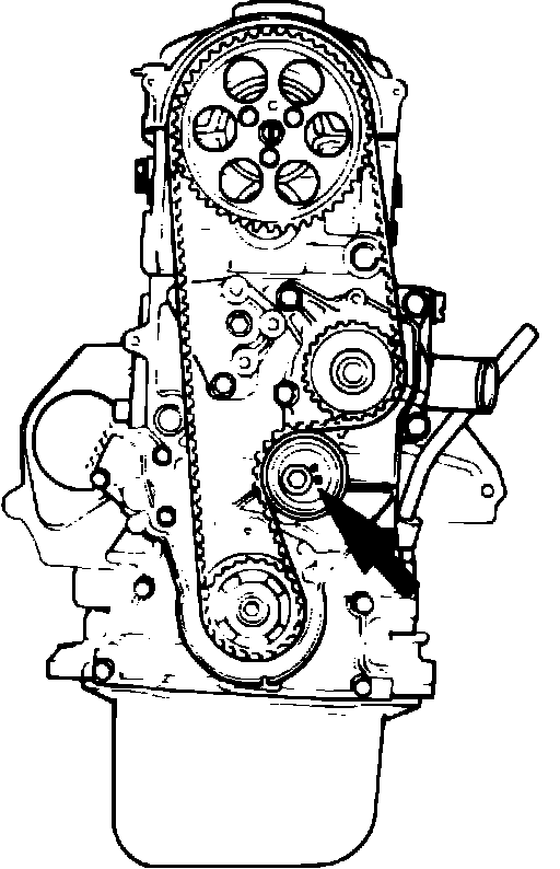 8. Install timing belt in the following order: crankshaft timing pulley, camshaft timing pulley, water pump pulley and tension pulley. Ensure both gears are aligned correctly. There must be no slack in belt after installation. The teeth of belt and teeth of pulley must be in perfect alignment.