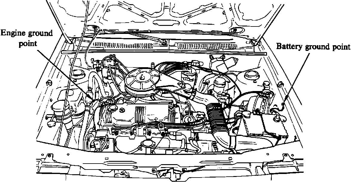 Unsatisfactory engine performance may be due to a poor or dirty ground point in the engine compartment. Improper grounding for the ECM can cause poor driveability. In troubleshooting any complaints of stalling, hesitation or engine performance, first check all of the engine compartment ground points.