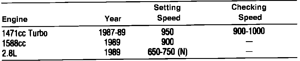 1471cc, 1588cc, ground test terminal on ALDL connector. Race engine over 2000 rpm and set idle to specified value.