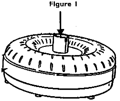Visual checking is not always enough, but be sure to look for scratches. The simplest, yet most effective way, is to run the tip of your fingernail, in a scratching stroke, down the hub, as indicated by the arrow (Figure 1). The hub is too rough, if anything is felt at all. Sand around the hub in the direction of the converter rotation with 1100-600 grit "wetted" paper. (Solvent, or transmission fluid work well).