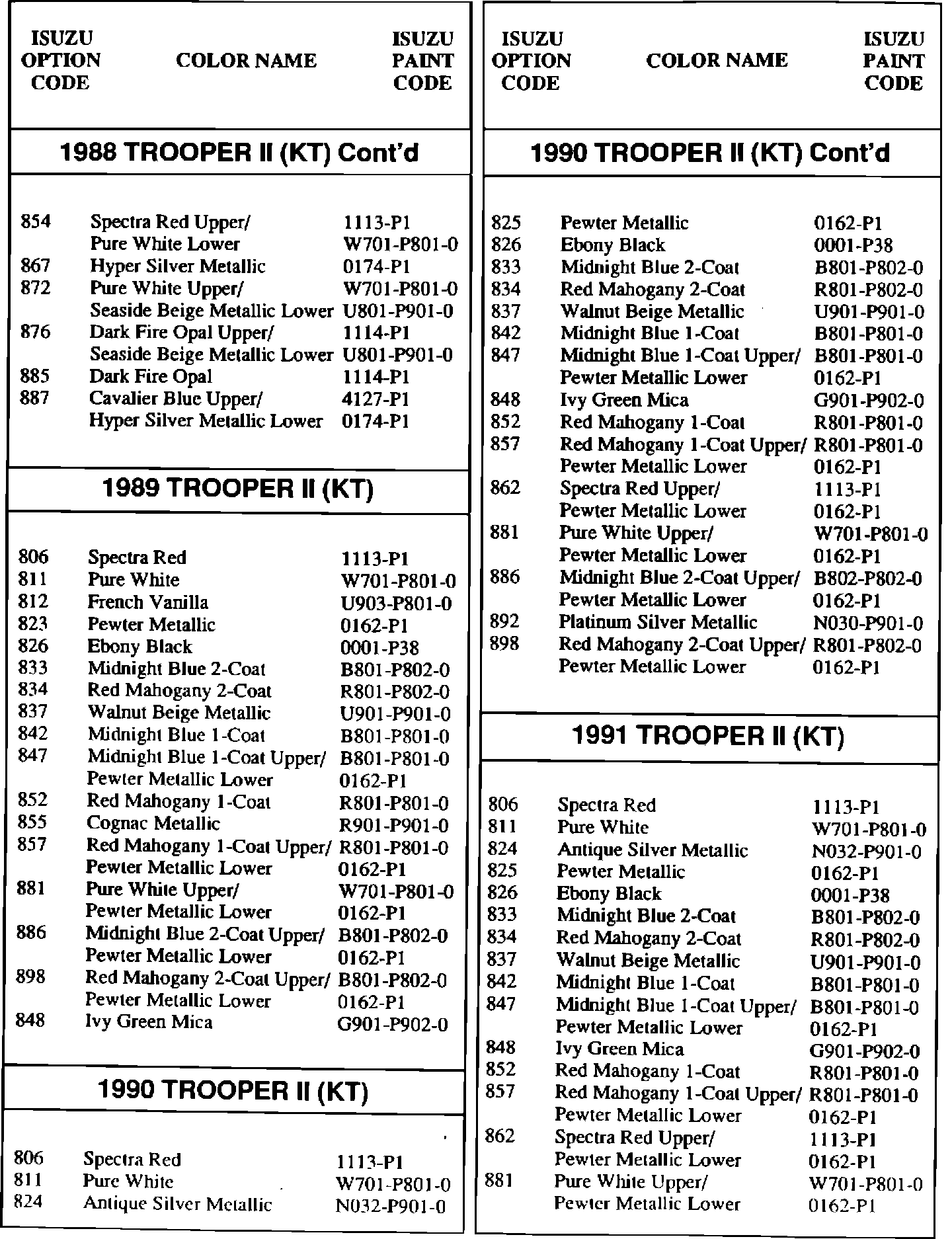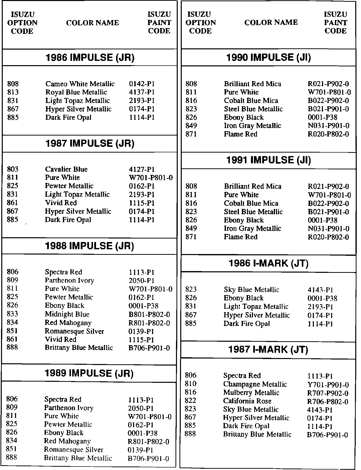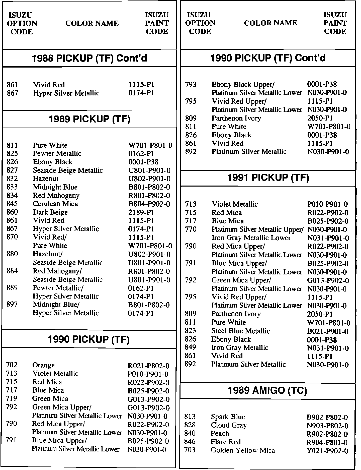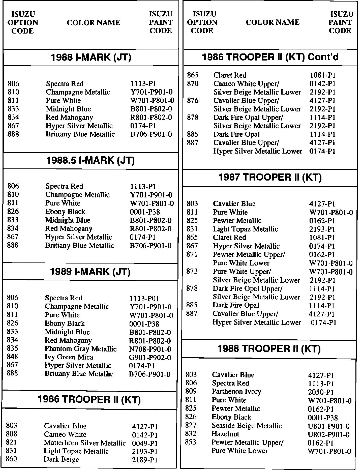 Paint - Codes/Cross Reference