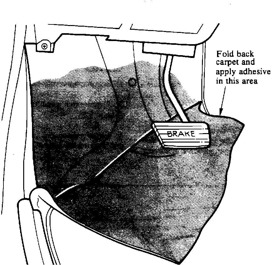 The carpeting on the driver's side may slip loose in the upper left corner. Follow the instructions in this Service Bulletin to apply carpet adhesive to correct this condition.
