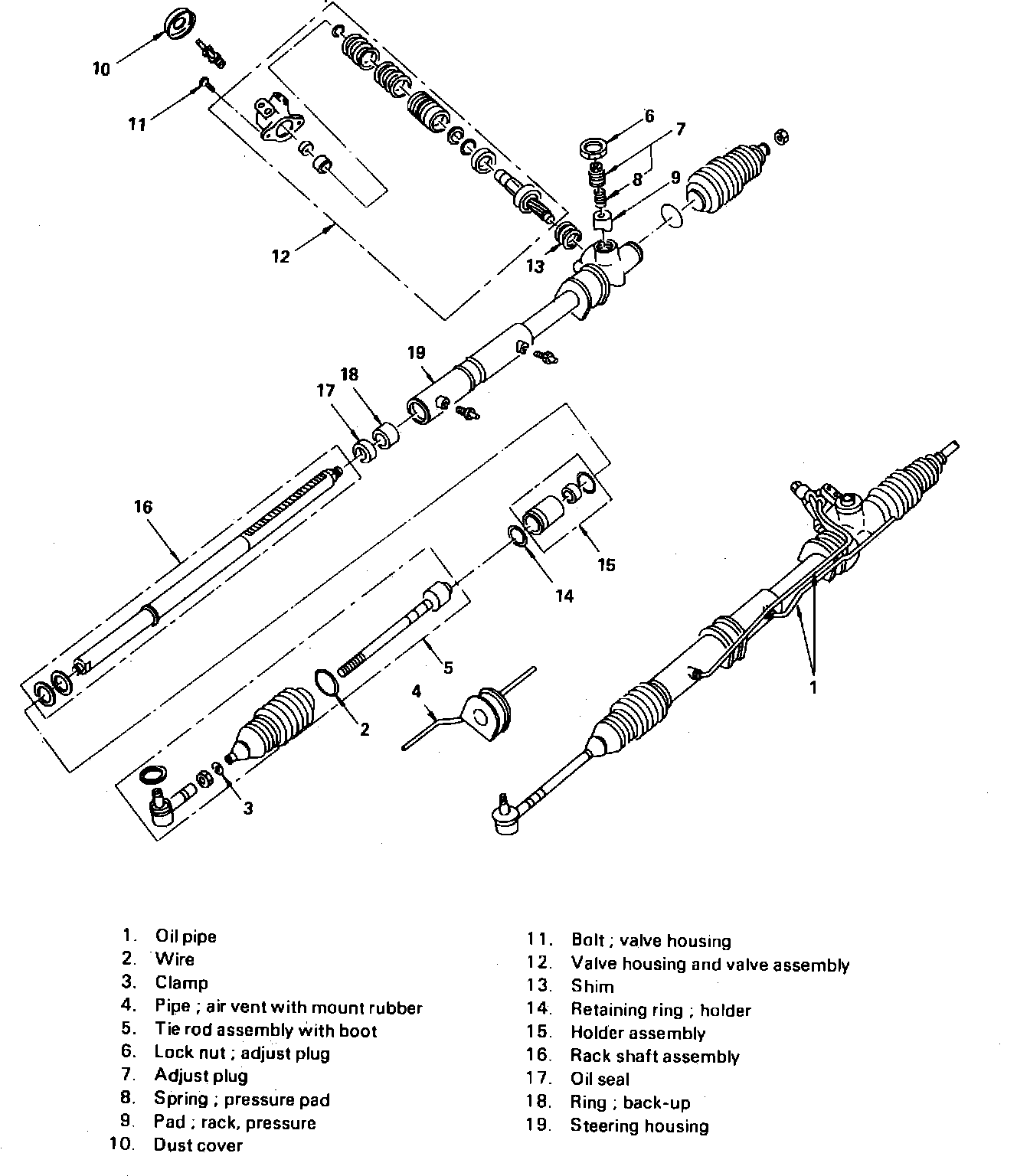 1. Lubricate grooves in rack teeth, sliding face of pressure pad and piston sealing face, then install shaft assembly into steering housing.