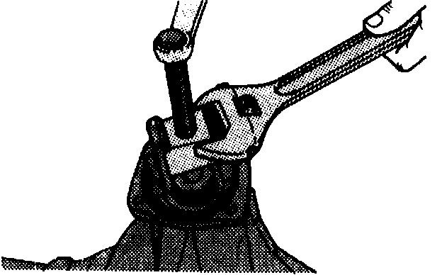 7. Install nut on stud. Hold stud stationary with wrench positioned on flats on end of stud; torque nut until a reading of 20 inch lbs. is obtained.