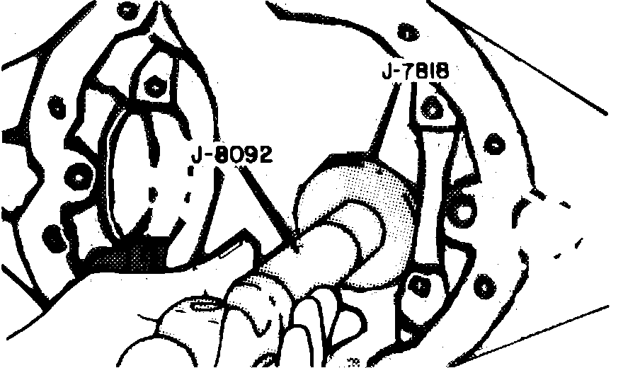 2. Install rear pinion bearing outer race, using installer J-7818 and driver handle J-8092, Fig. 4.