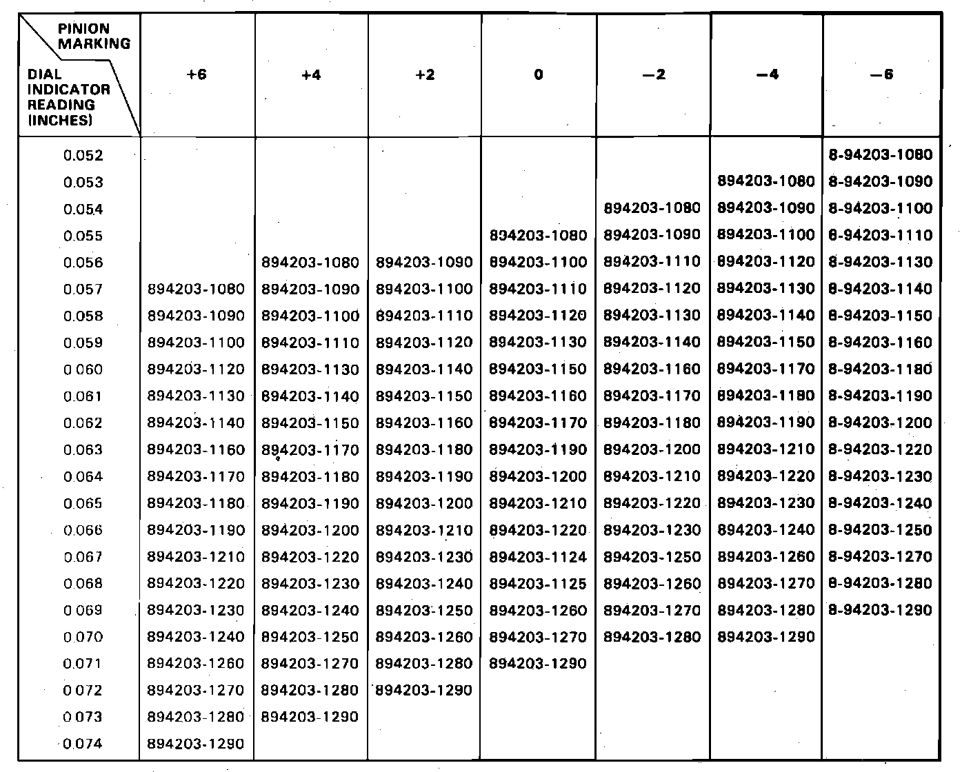 15. Select correct pinion shim to be used during pinion reassembly on the following basis: