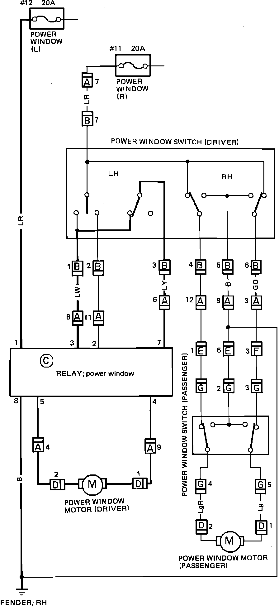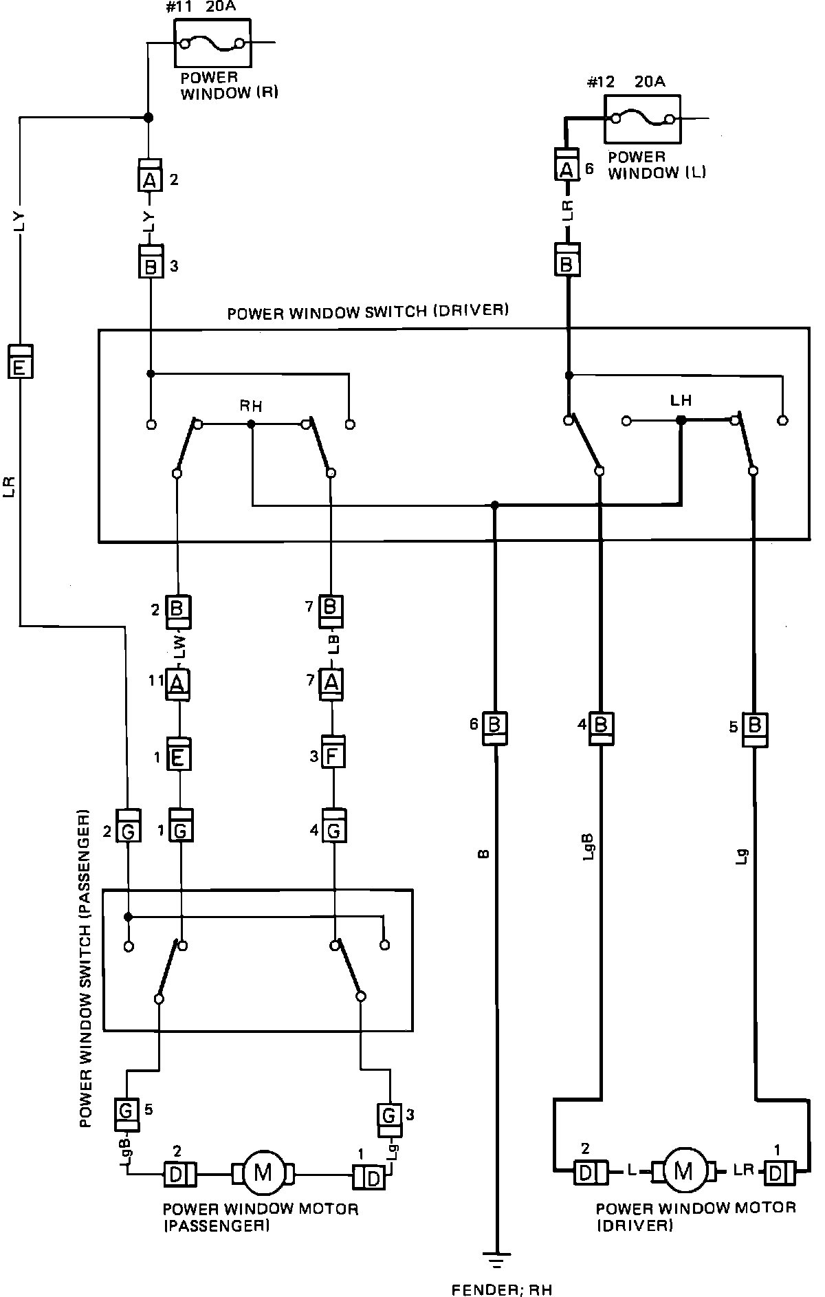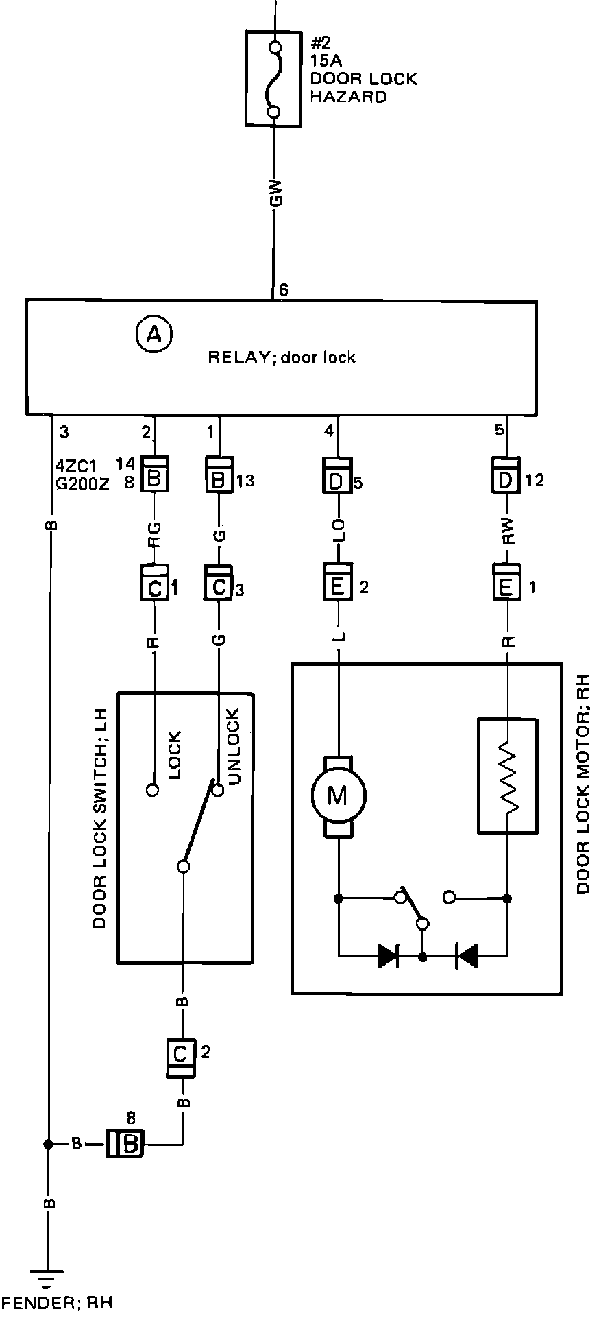 Door Lock & Power Window Wiring Circuit: