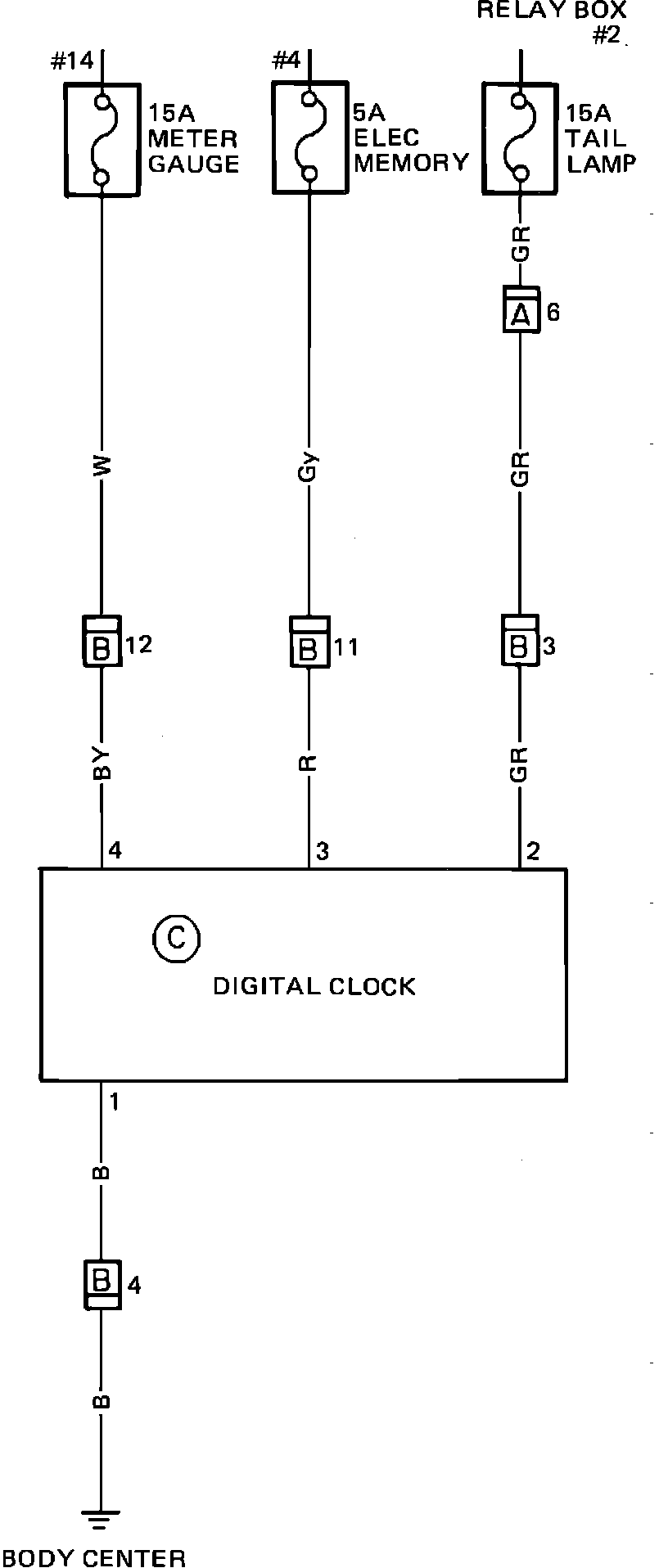 Power Window & Digital Clock Wiring Circuit