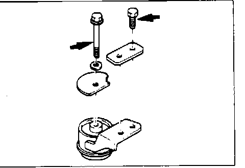 Attach the engine mount cushion to the body, then lower the engine hoist gradually, aligning the bracket with the engine mount cushion. Tighten the bolts to the specified torque.