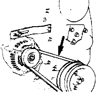 2. Loosen the air conditioning compressor adjust plate bolt, then remove the air conditioning compressor drive belt. Loosen the power steering oil pump adjust plate bolt, then remove the power steering oil pump drive belt. Loosen the alternator adjust plate bolt, then remove the alternator drive belt.
