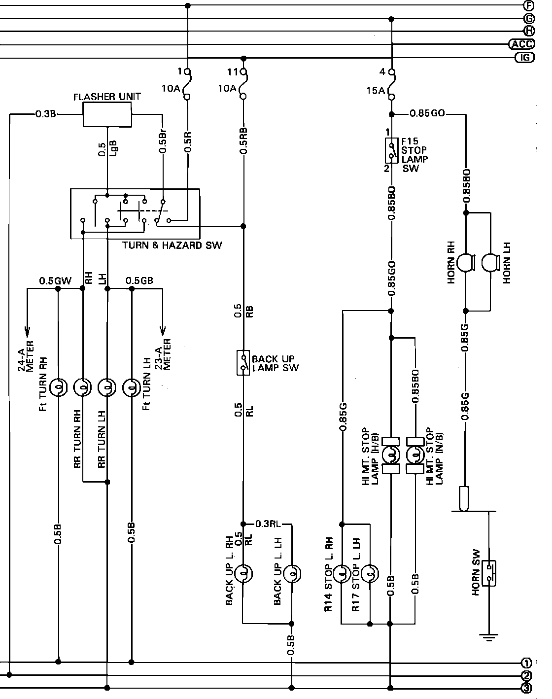 Hazard, Horn, Stop Light & Turn Signal Wiring Circuit. Turbo: