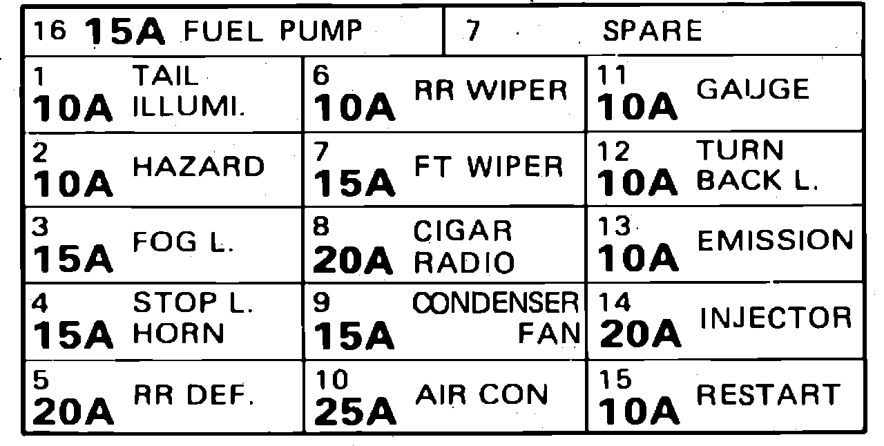 Fuse Panel. Turbo: