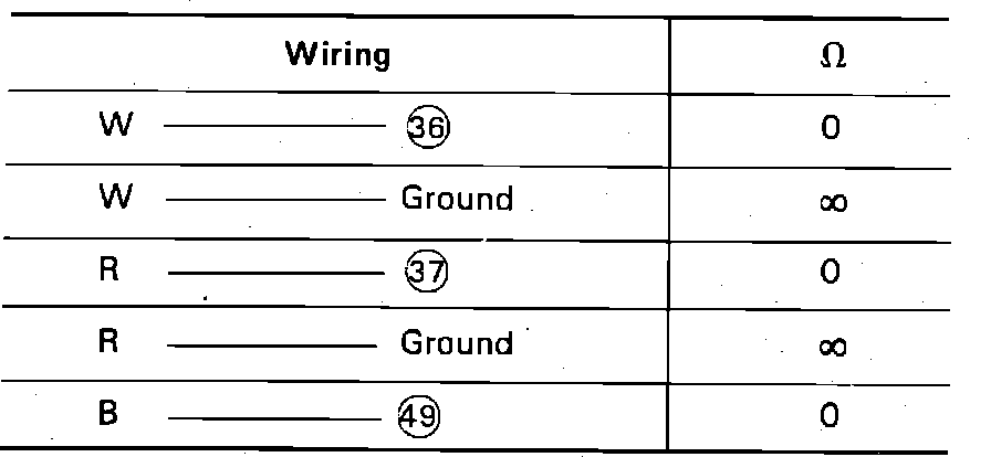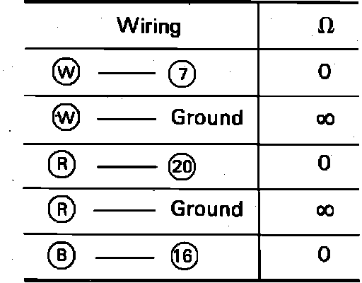 6. If continuity is not as specified in chart, repair or replace faulty wires.