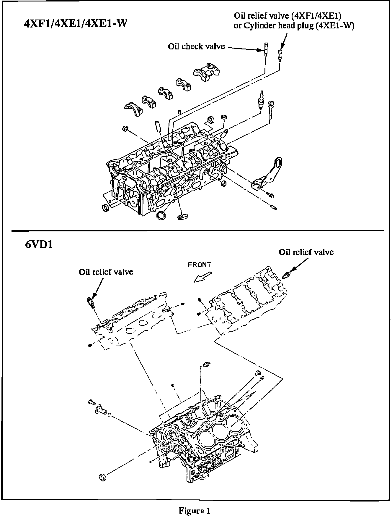 Refer to Figure 1 for location of oil check valve, oil relief valve and cylinder head plug.
