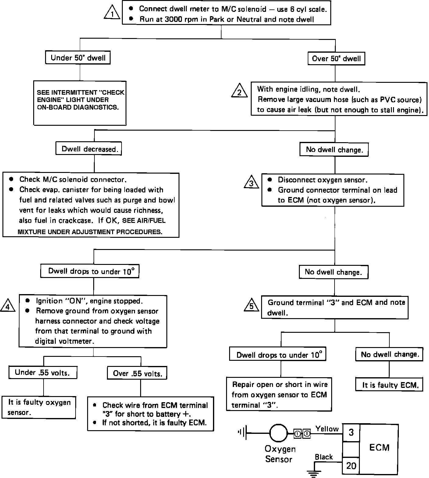 2. This simulates a lean condition to check ECM response. A drop in dwell indicates that the ECM and oxygen sensor are okay.