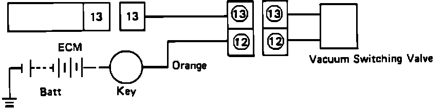 3. If more than 40 ohms; turn ignition "ON" (engine not running) and ground diagnostic connector (ALDL). With VSV disconnected, probe harness terminal "12" with a test light. If the light does not come on, check and repair the circuit as needed.