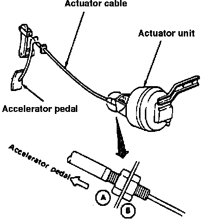 3. Pull outer cable toward accelerator pedal, ensuring there is no play in the inner cable at this time.