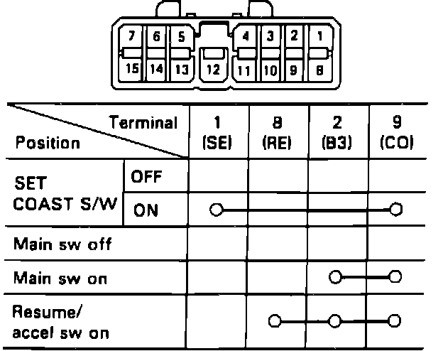 1. Disconnect two satellite switch connectors and check continuity between the switch side connector terminals as shown in Fig. 15.